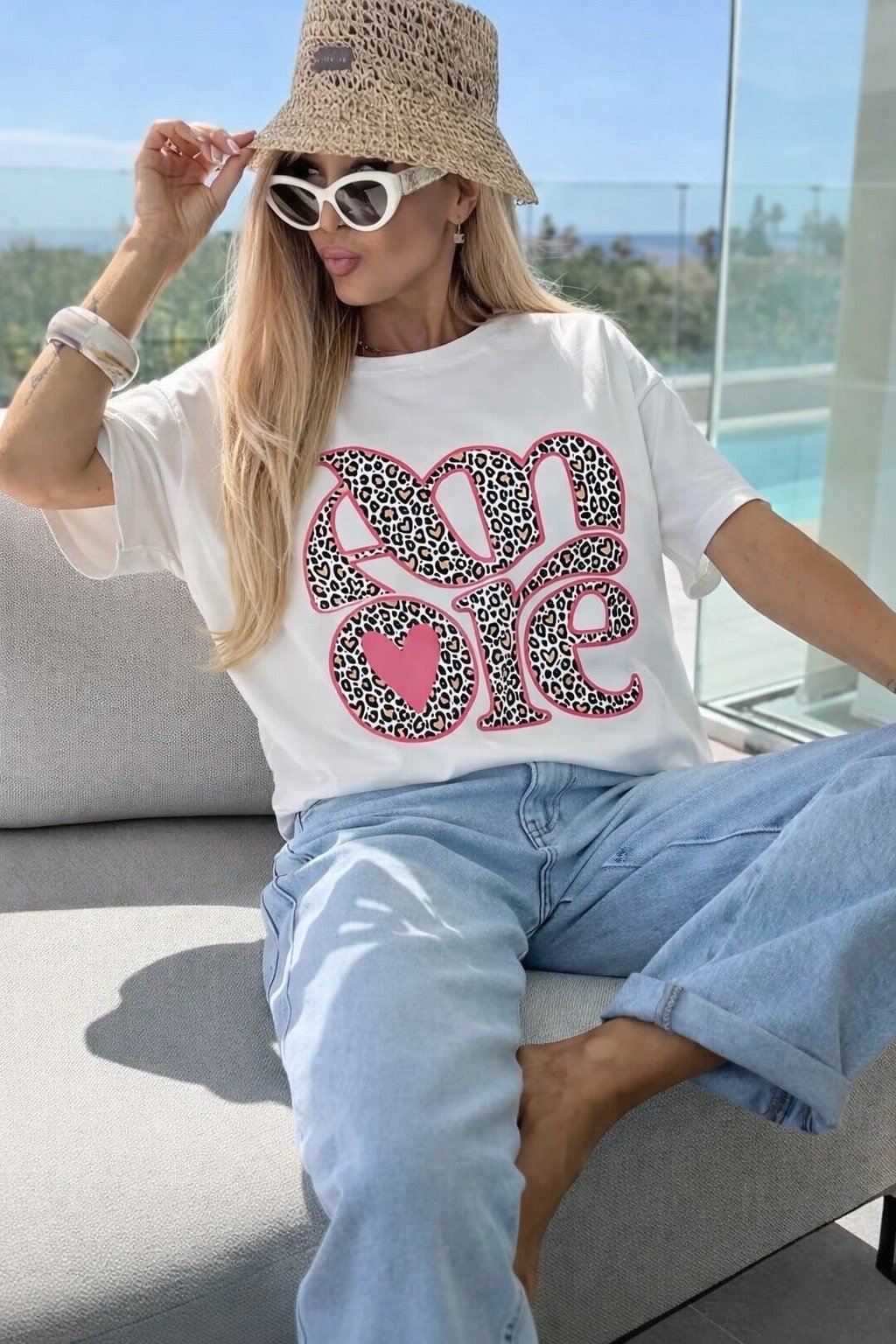 Damen Bluse „Amore“ mit Leo-Detail – Oversize Look